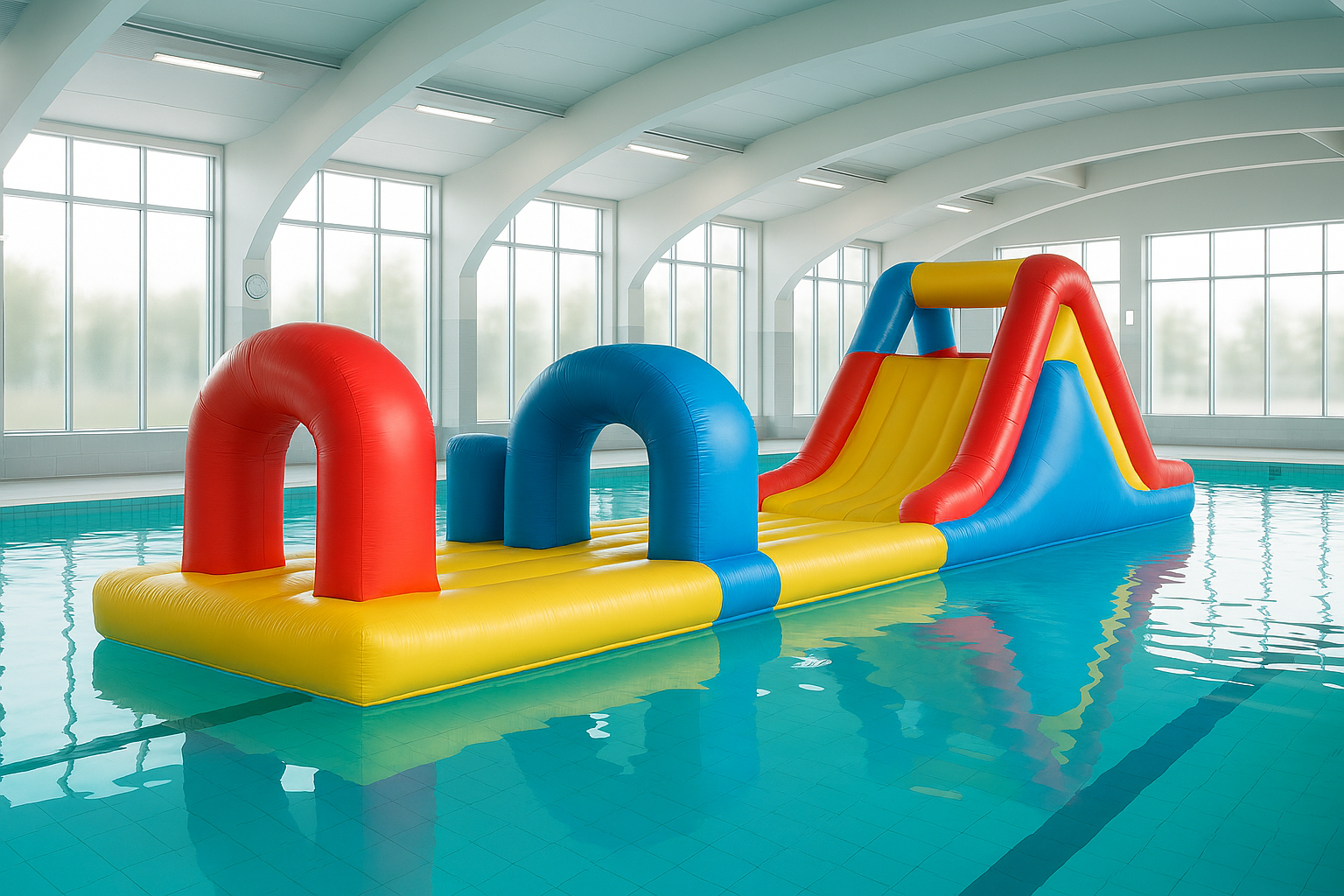 Mise en place d'une structure gonflable dans le grand bassin pour venir s'amuser en famille ou entre amis